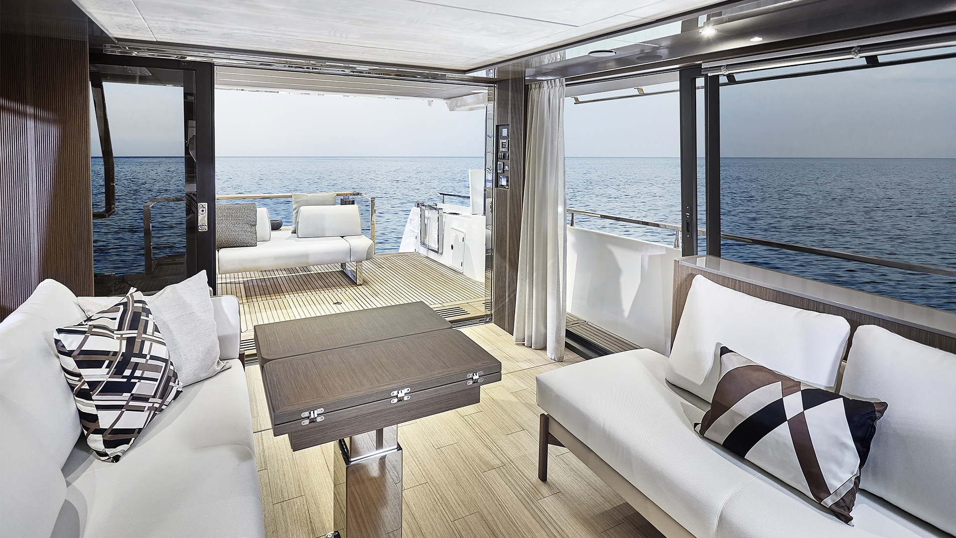 Voluminous living spaces, natural light, easy flow of movement on board