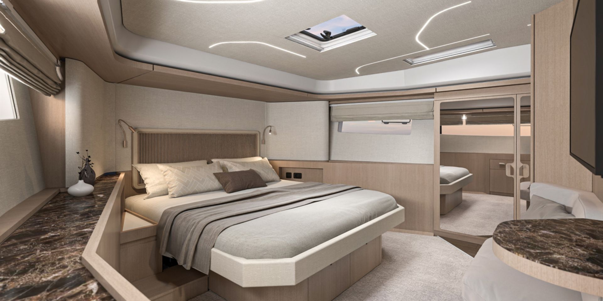 What’s more, the separation between private living spaces and the engine room considerably improves the level of sound insulation, thus guaranteeing absolute tranquility on board.
