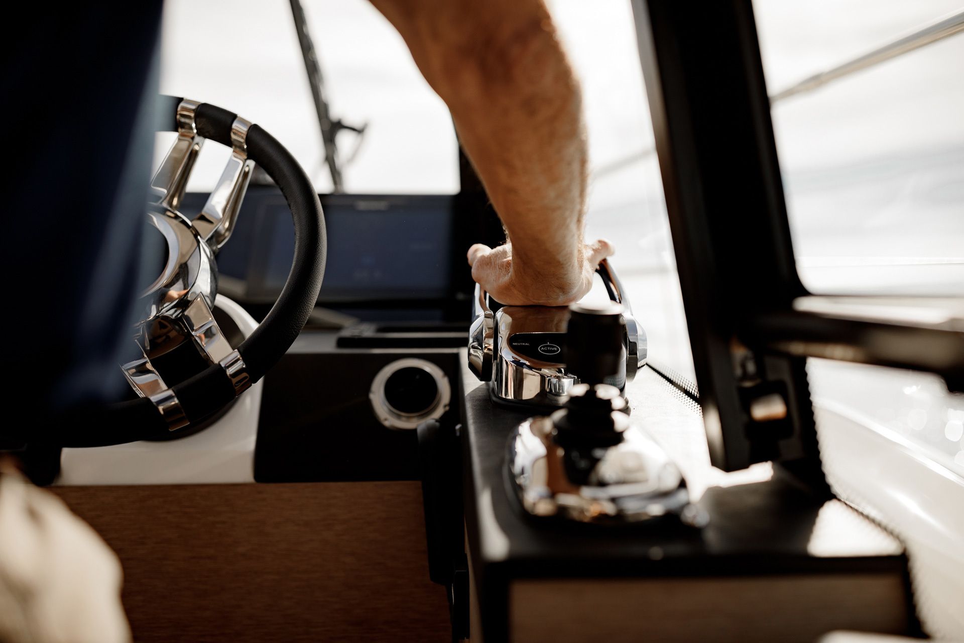 Gracias a su gestión totalmente automatizada, el sistema de control Cummins integra la conexión directa entre sus mandos y los joysticks. Los desplazamientos son ahora progresivos y se simplifican para la máxima comodidad y seguridad. Los navegantes de todos los niveles de habilidad apreciarán este control de la embarcación, fácil e intuitivo.