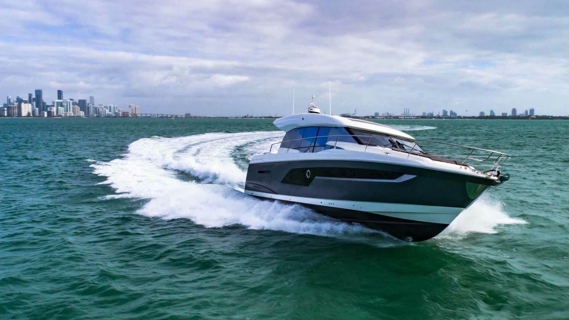 A PRESTIGE 520S se destaca por seu casco poderoso, projetado para alto desempenho, confiabilidade e excelente navegabilidade.