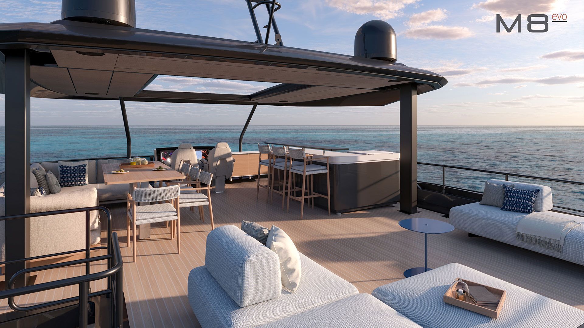 With thoughtfully designed new layouts to reflect your desires and needs, the M8 EVO promises precious moments on the water for you to savor, together with friends and family, in an elegant, comfortable atmosphere.